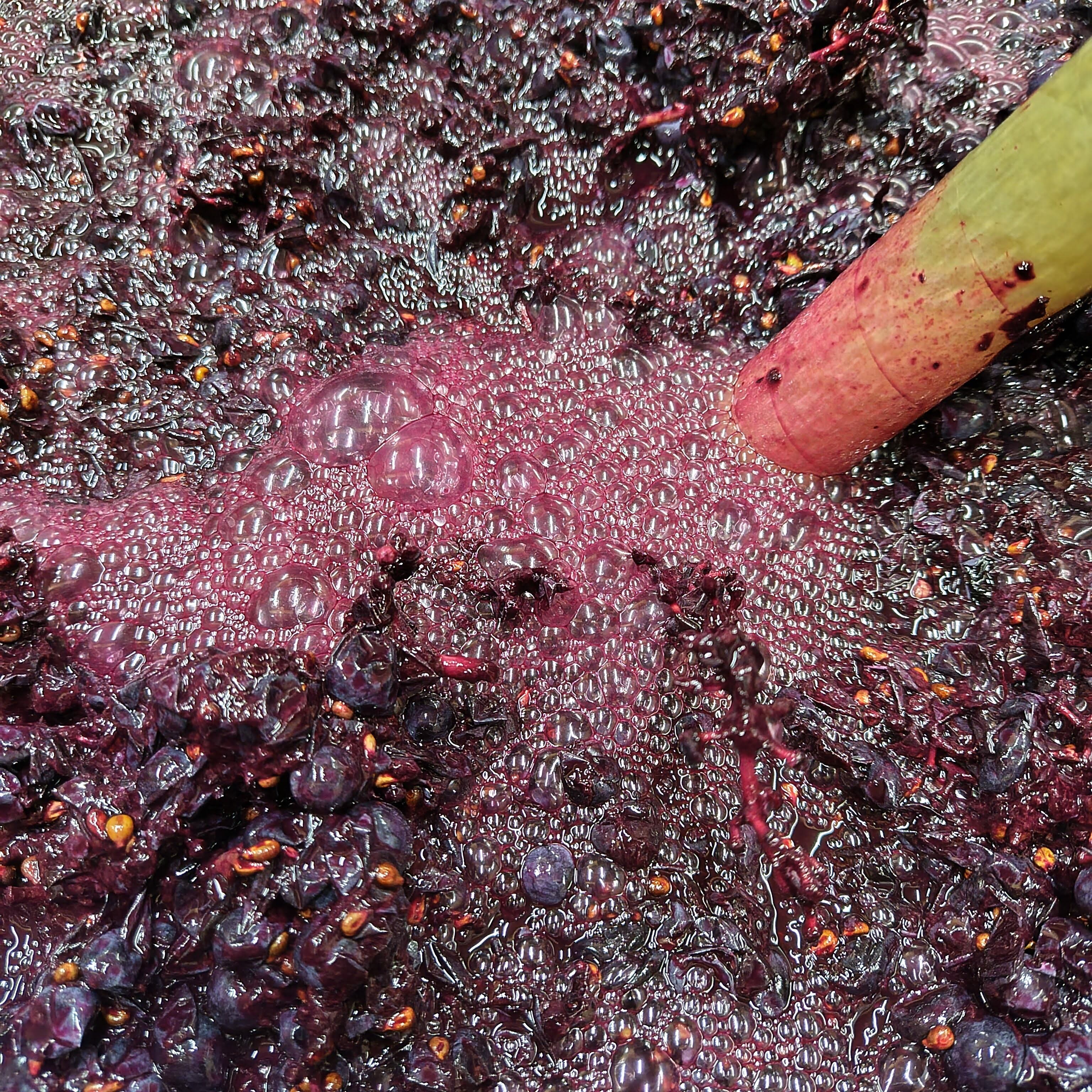 発酵は、小公子から採取した自然酵母で行いました。通常は醸造の際に除くことの多い葡萄の軸(梗)も一緒に発酵させています(全梗入れ)。また、澱引だけで清澄、ろ過はしていません(無清澄、無濾過)。亜硫酸などの酸化防止剤も加えず、葡萄だけで作ったナチュラルワインです。